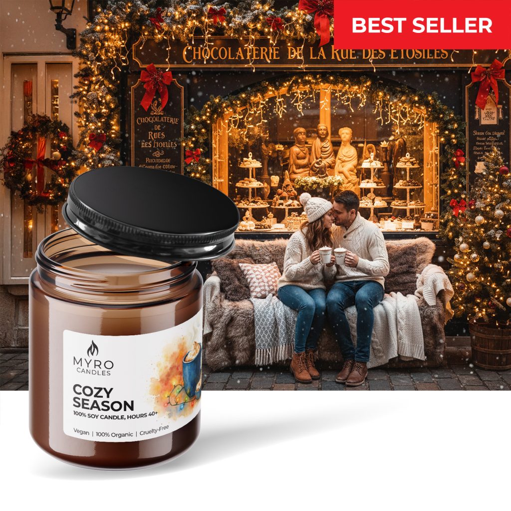 Το κερί COZY SEASON προσφέρει τη θέρμη που συνοδεύεται με το άρωμα της σοκολάτας σε συνδυασμό με συμπυκνωμένο γάλα,